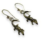 These Fun Florida Alligator earrings are Hand Crafted in your choice of metal, these dangle/drop earrings feature a French hook closure for easy and comfortable wear. The earrings are designed to resemble the Florida Swamp Beast, or support your Favorite Florida Gator Team. The earrings complement any outfit, making them suitable for your Florida or Southern Adventure.