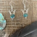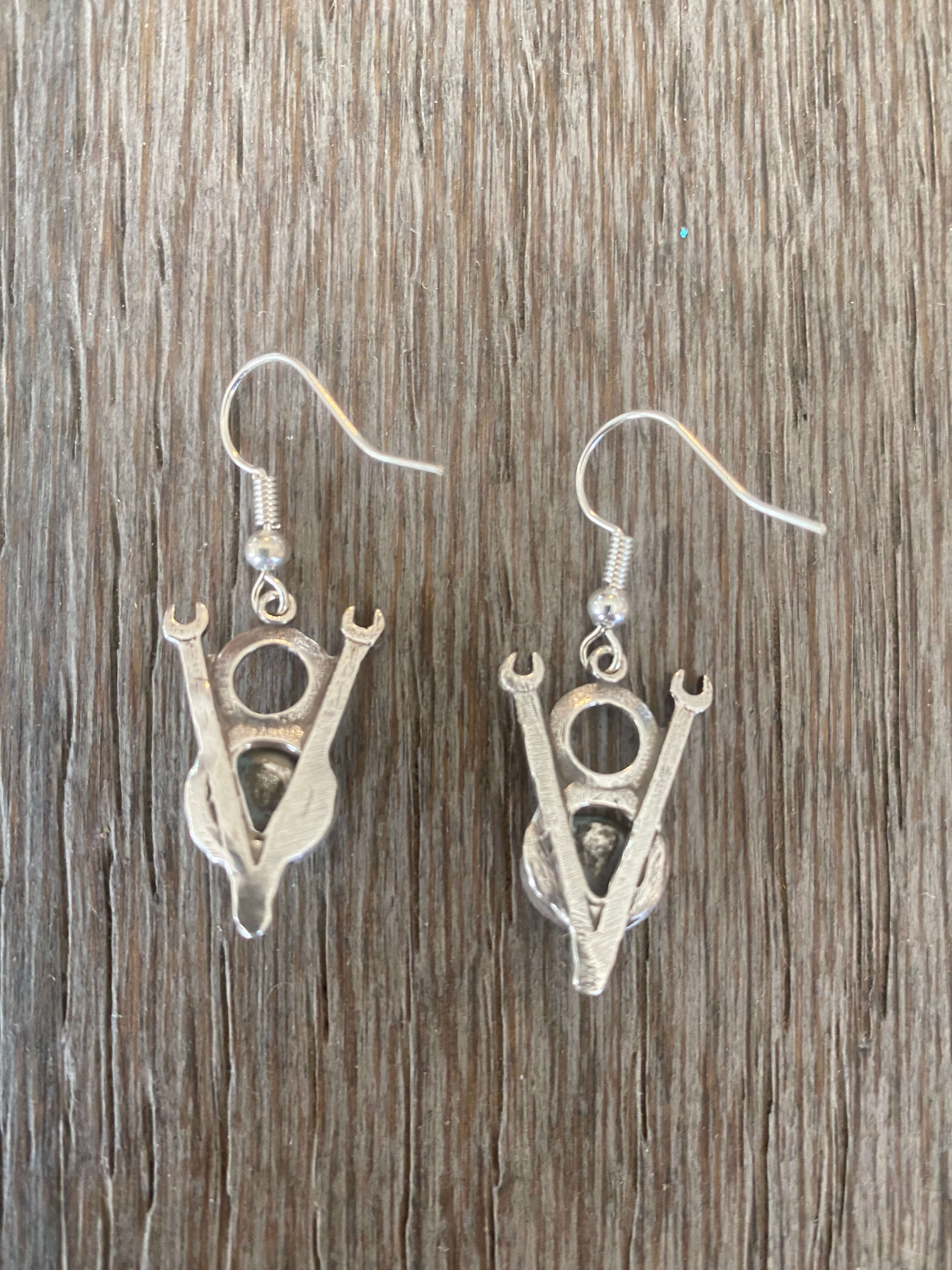 V8 Wrench emblems are about 3/4″ with French Earwire. We then added a sterling silver bezel and a turquoise stone.
