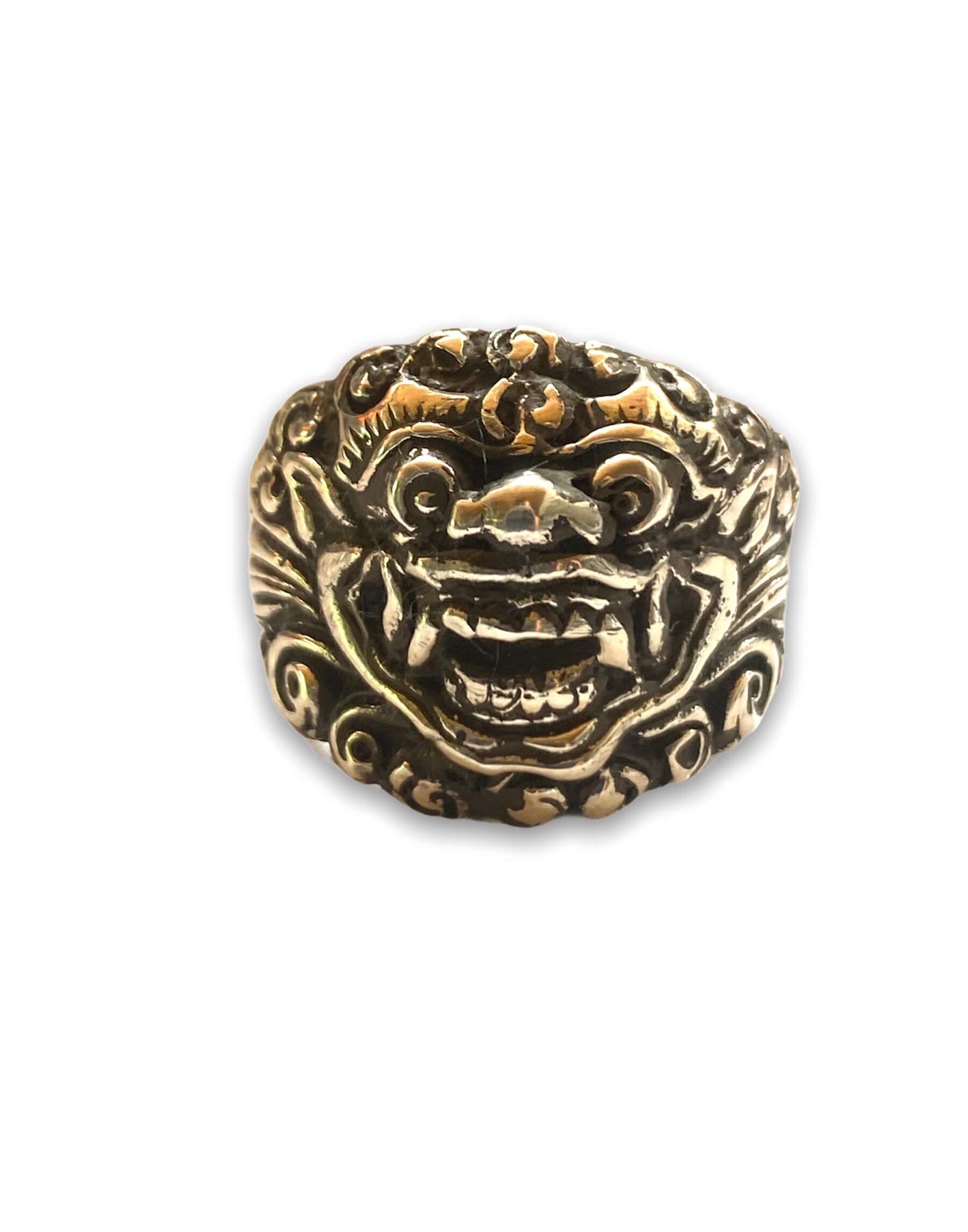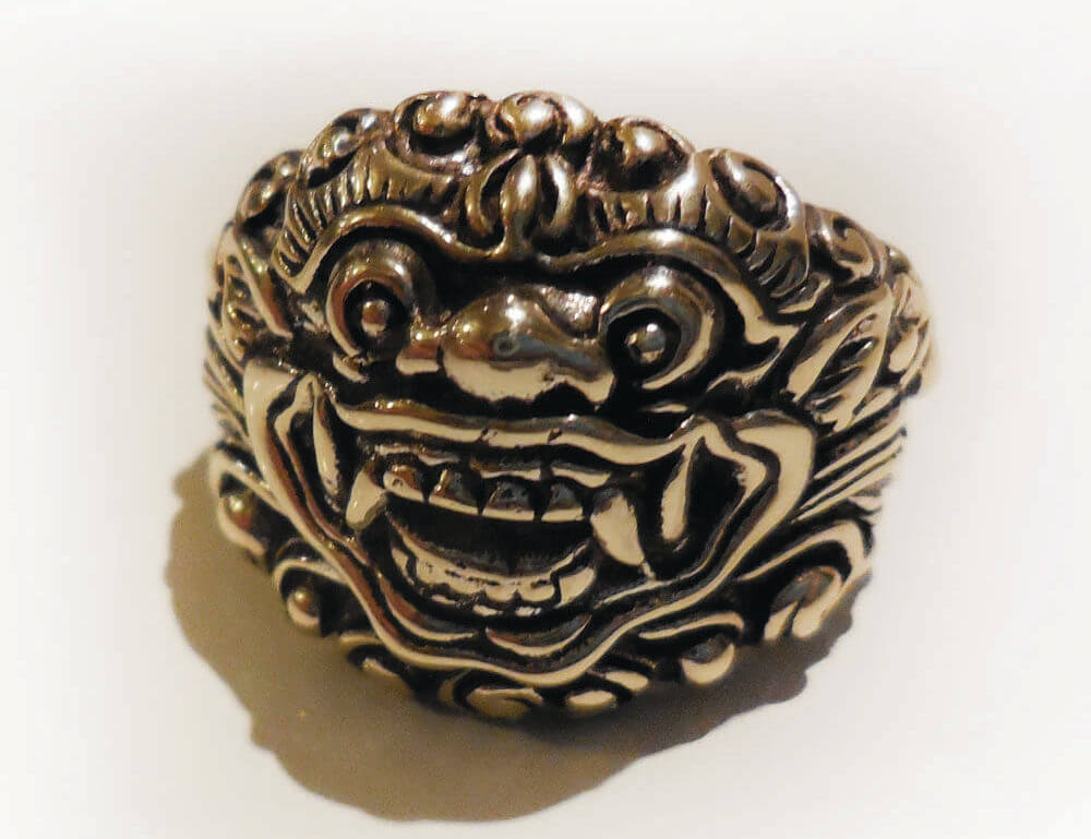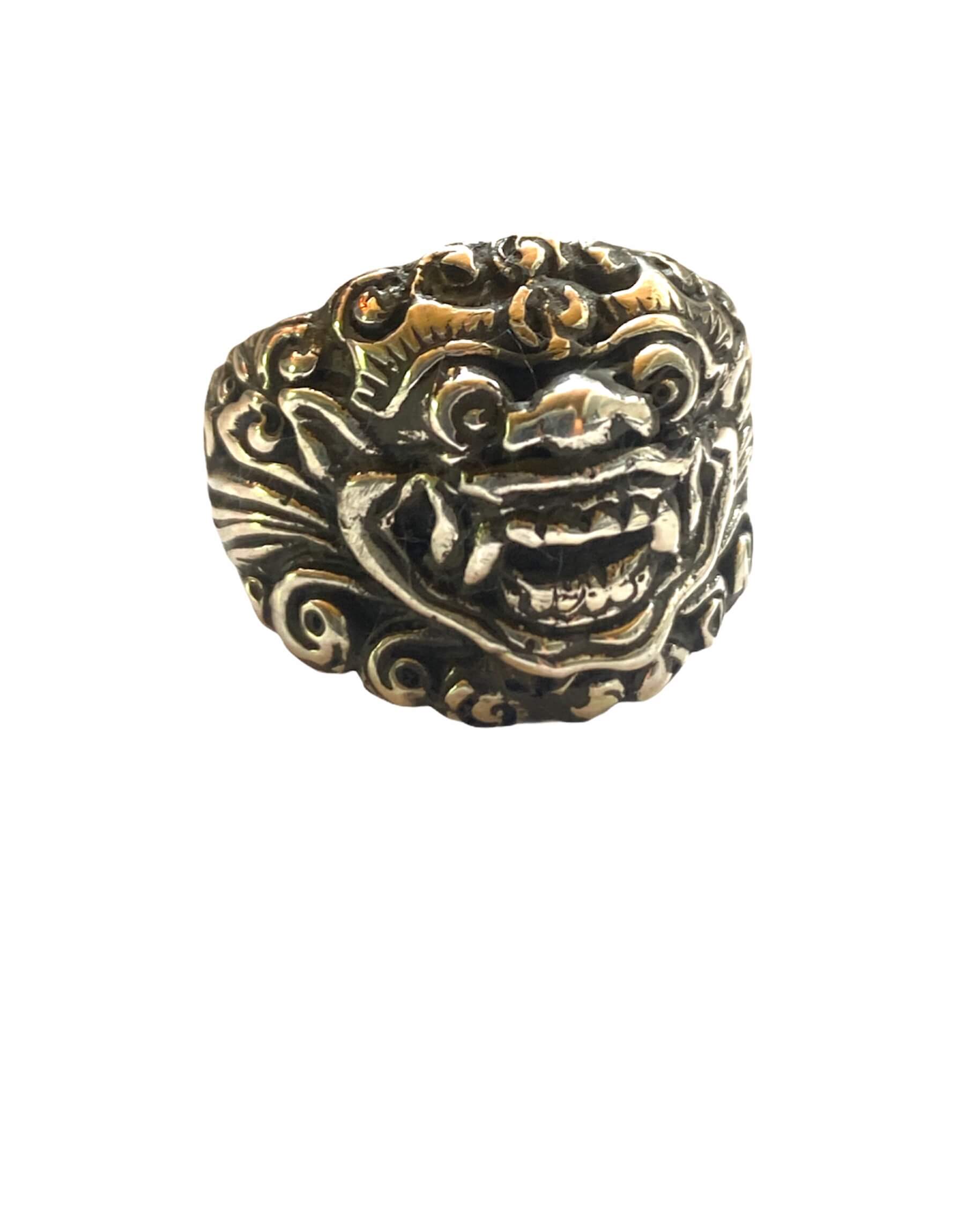This Hi Octane Jewelry handmade Baliense Barong ring is created using the lost wax casting method. We carve the design in wax, size it, and then cast in .925 Sterling Silver. Gold is also available. If interested in ordering gold, please convo for pricing and information.