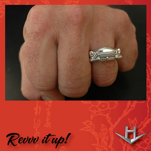 1953 Buick Ring. This revvv’d up, handmade, .925 Sterling silver ring is modeled after a Buick Roadmaster. This ring is made to order and to the size you need. This handmade sterling silver piece is created using the lost wax casting method. The piece is carved in wax, sized and then cast. This car has an amazing grille.
