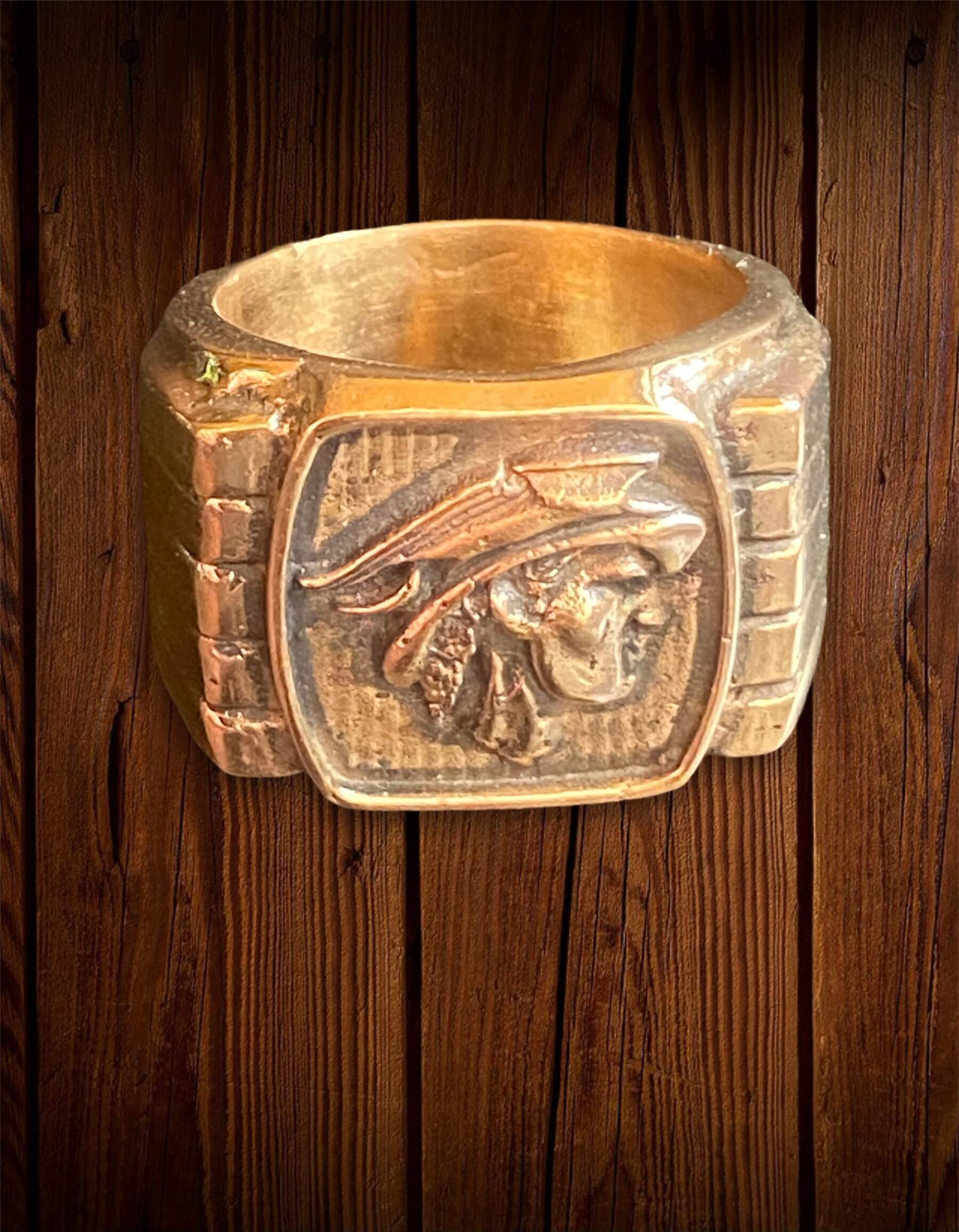 1960’s era Winged Mercury Man Ring. This ring is inspired by the vintage iconic Mercury man logo. It appeared on the Sterling wheel of 1960’s Mercury’s. This handmade ring is created using 3D software and printed with our 3D printer and then cast, using the lost wax casting method. After printing we size the piece in wax, and then cast in the metal of your choice.