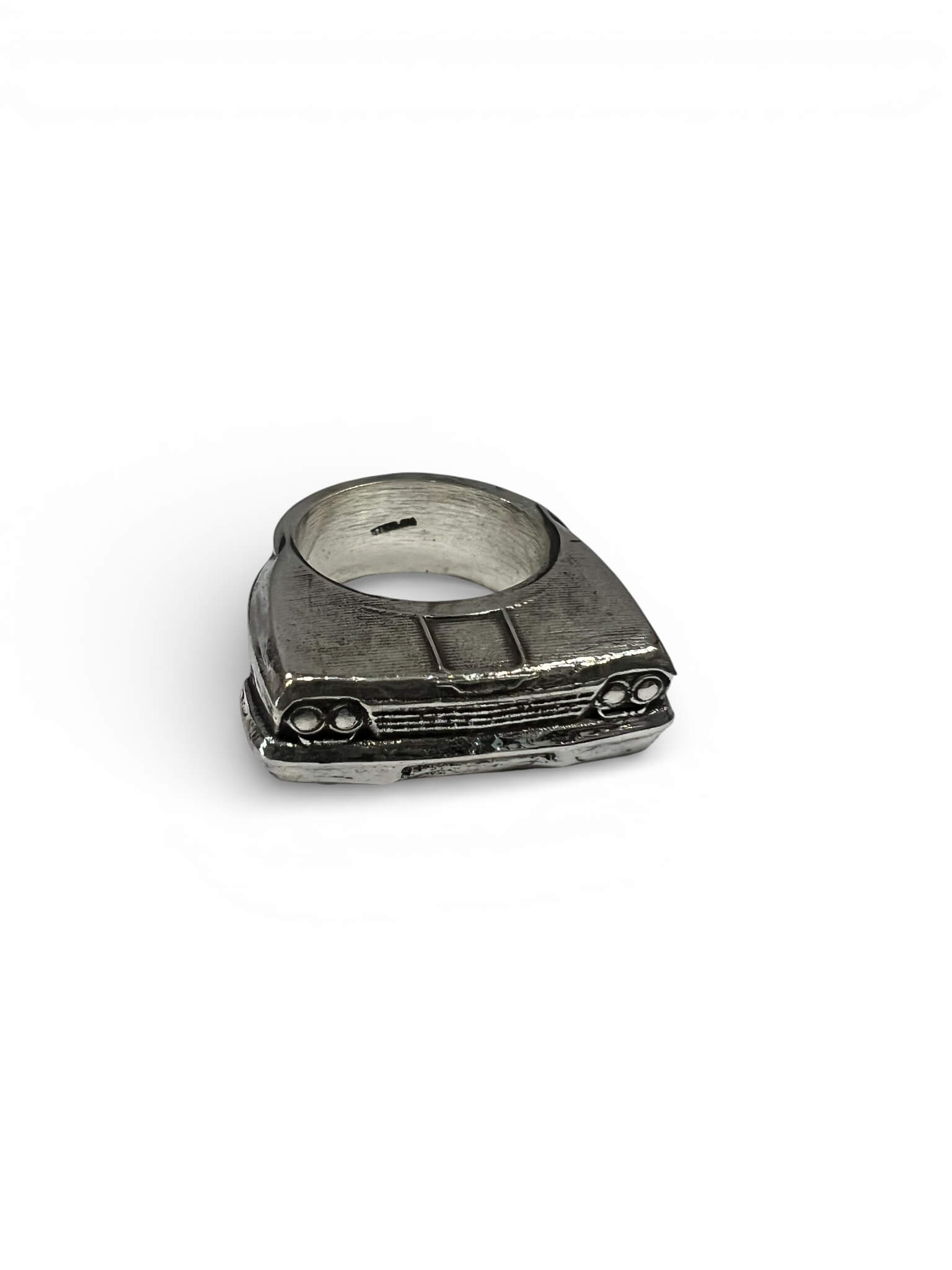 This ring celebrates the golden era of American automotive culture — the ‘62 Impala popularly adopted by low-rider aficionados for its clean lines, chrome trim and the classic “bubble-top” roof profile. By using sterling silver, we elevate that part-pop–culture, part-heritage-automobile icon into a jewelry piece worthy of daily wear or special occasions. It resonates not only with car lovers, but with anyone who appreciates bold design, nostalgia, and the freedom of the open road.Turnaround time is 10 working days or less.