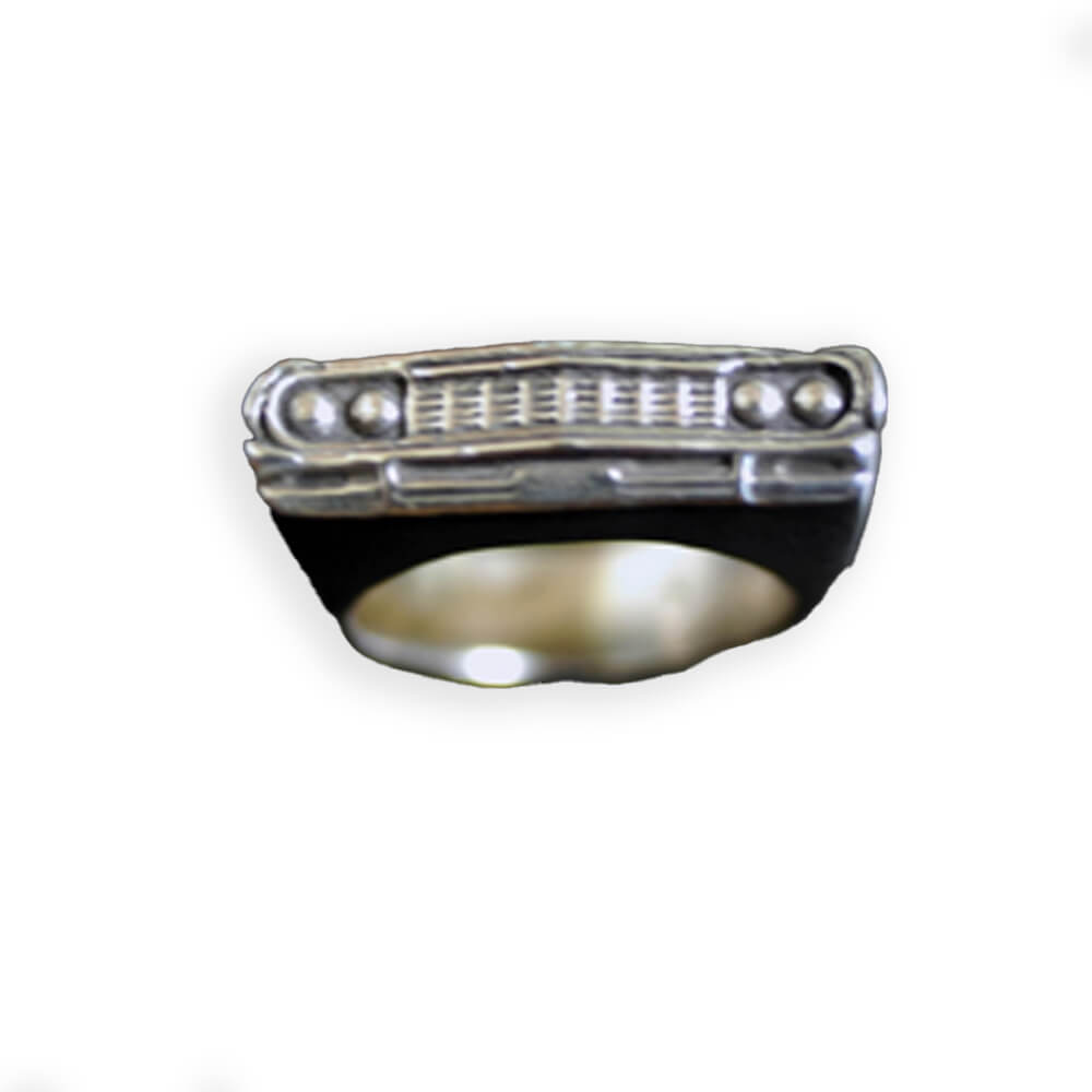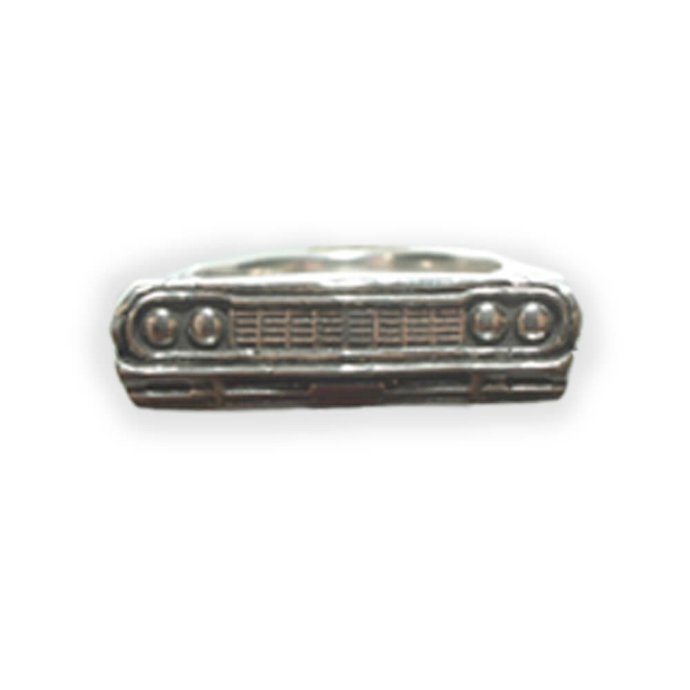 1964 Chevy Impala Car Grille Ring. This revvv’d up, handmade, silver ring is modeled after a 1964 Chevrolet Impala. The Ultimate Lowrider. This ring is made to order and to the size you need. This handmade silver piece is created using the lost wax casting method. The piece is carved in wax, sized and then cast. If you want to pimp your lowrider out more we can gold plate the details.
