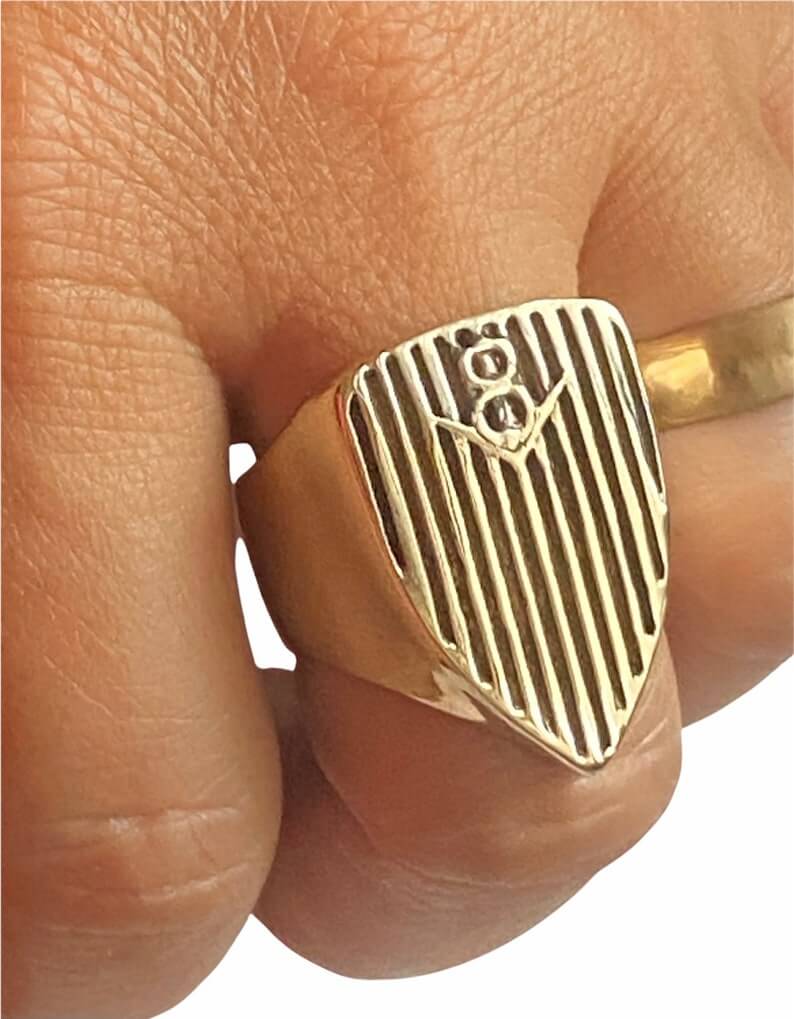 Our V8 Hot Rod Grill Ring is perfect for your Gearhead. This handmade Hi Octane Jewelry V8 Hot Rod Grille ring is created using the lost wax casting method. This design is created in our 3D software then the design is printed on our 3D printer in a castable resin wax, sized, and then cast in your choice of metal. Gold is also available. If interested in ordering gold, please convo us for pricing and to create a custom order.