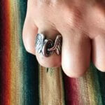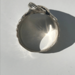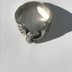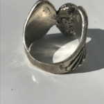This handmade sterling silver piece is created using the lost wax casting method. The ring is molded and carved in wax and then cast.