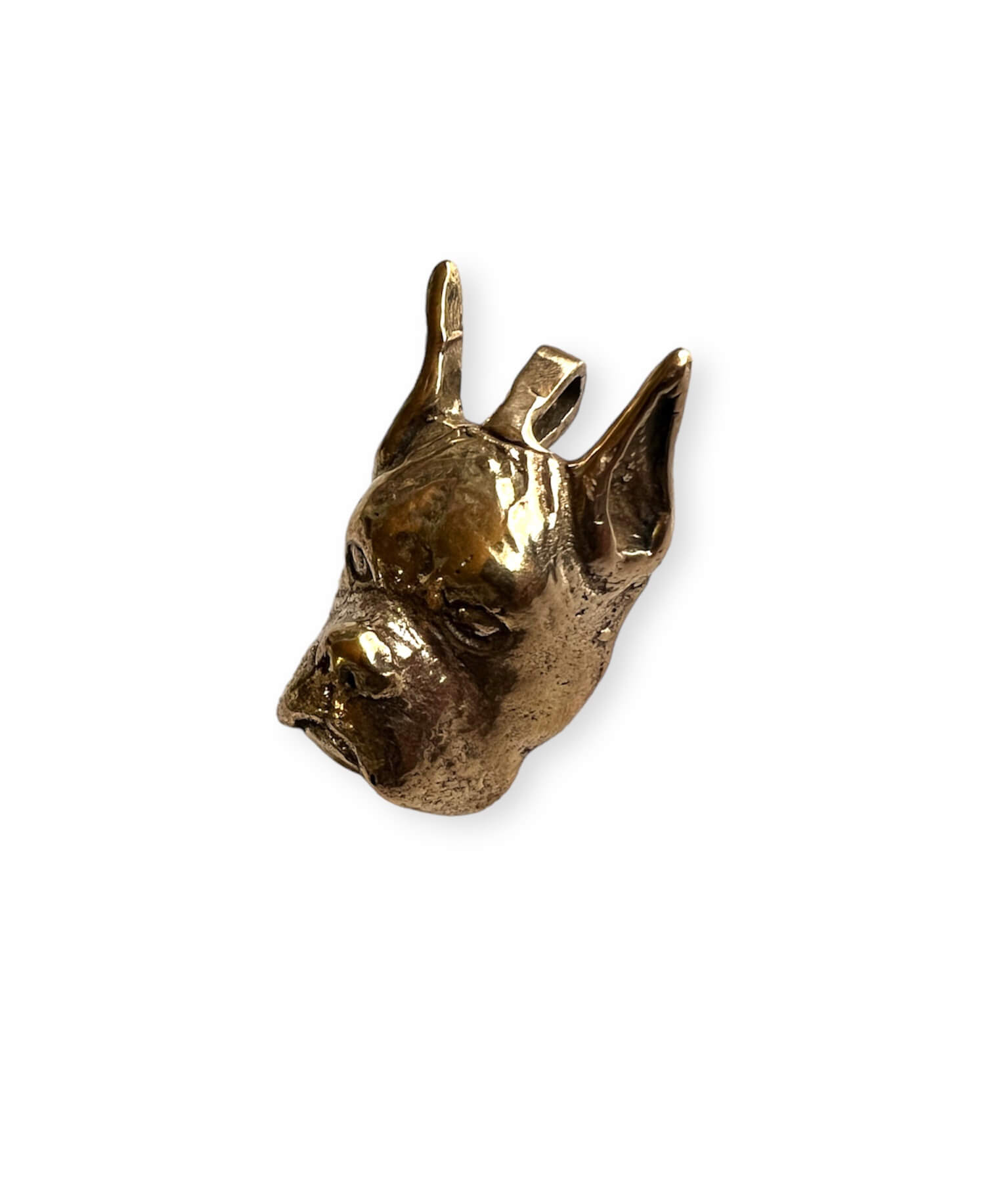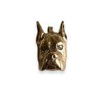 This handmade Hi Octane Jewelry Boxer Dog ring is created using the lost wax casting method. We carve the design in wax, size it, and then cast in the metal of your choice.