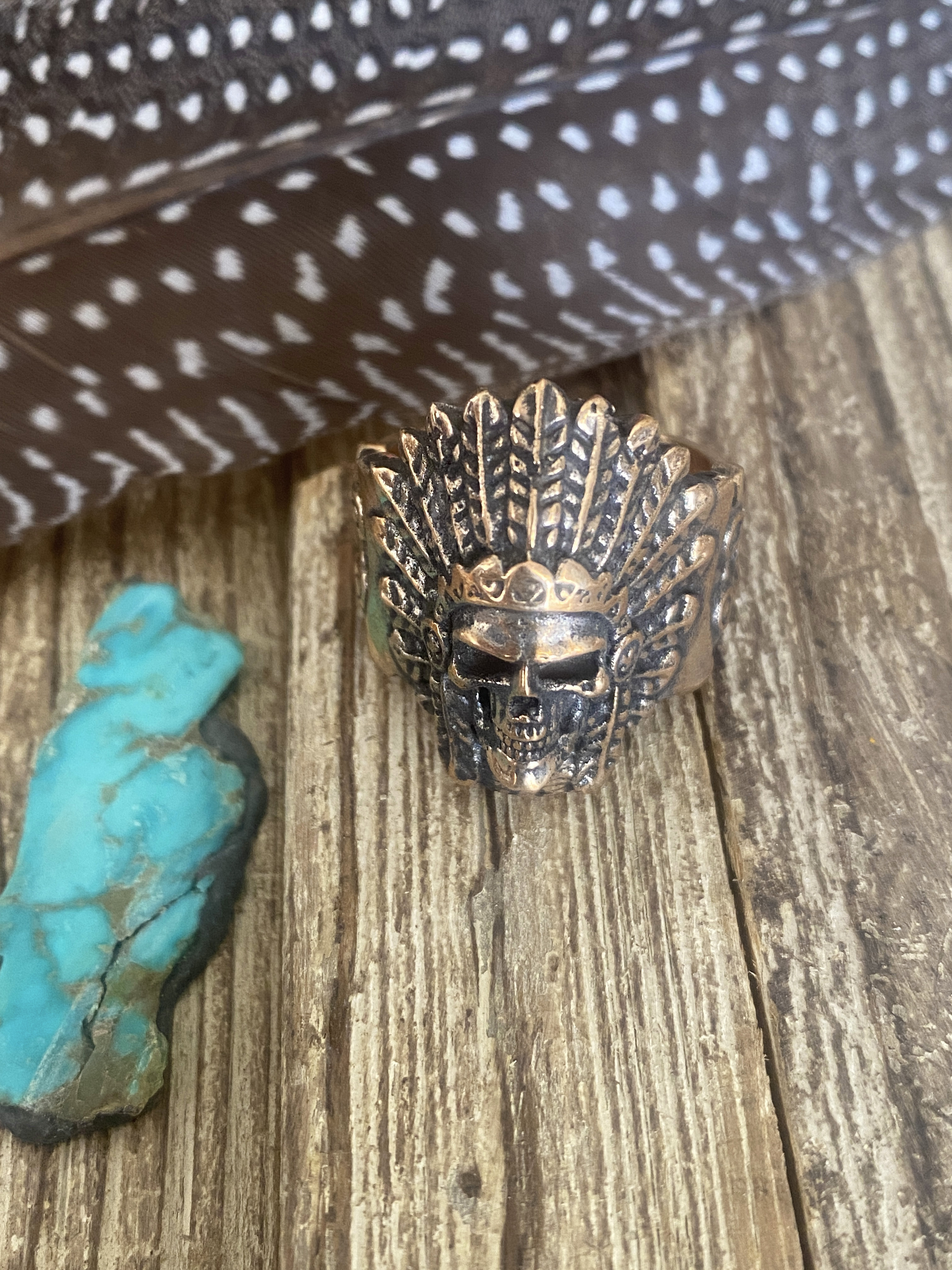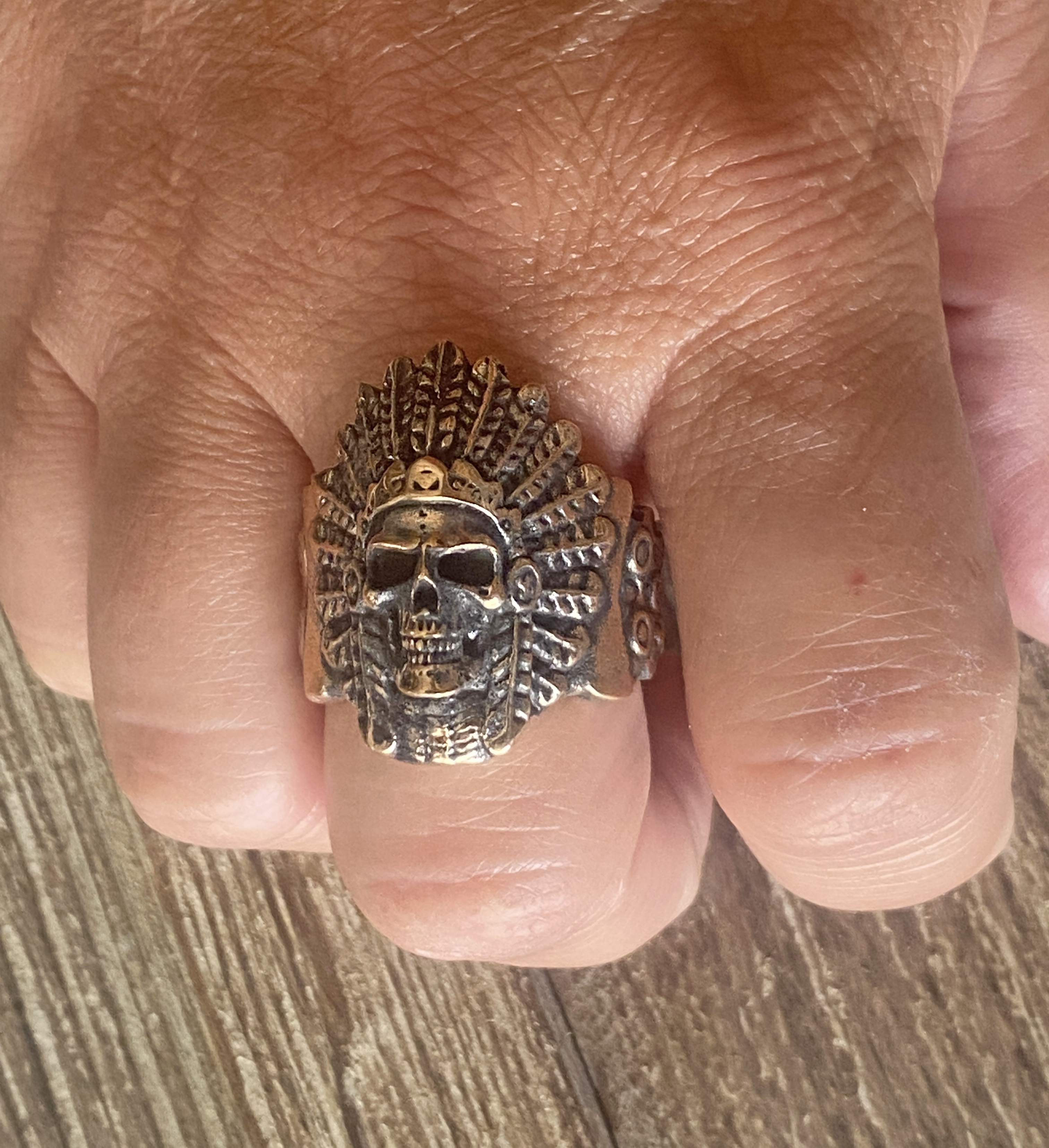This Warrior Chief ring is 3D printed in castable wax on our 3D printer. Then we cast the ring using the Lost wax Casting Method. The ring is available in a variety of metals.