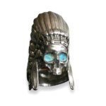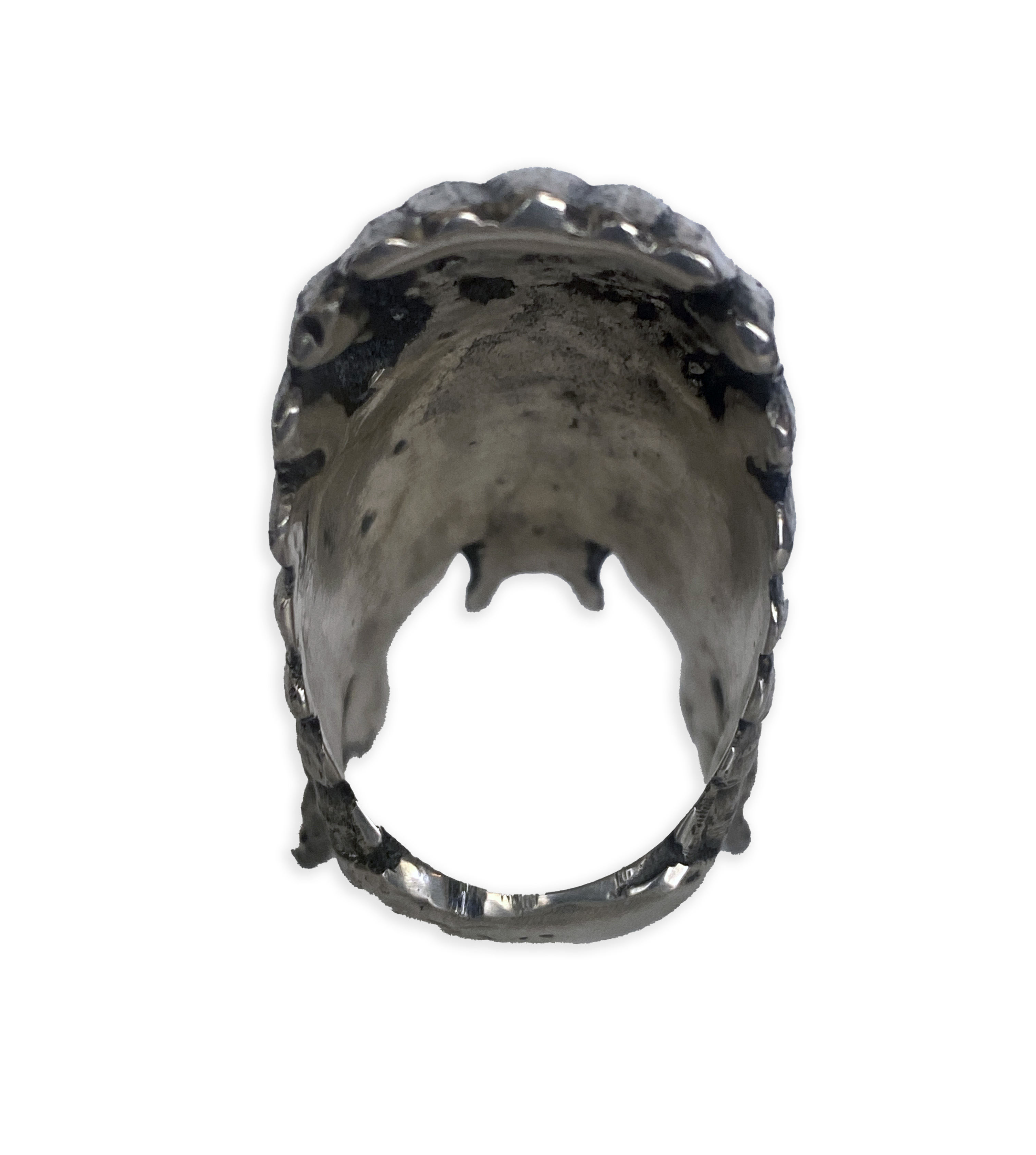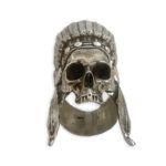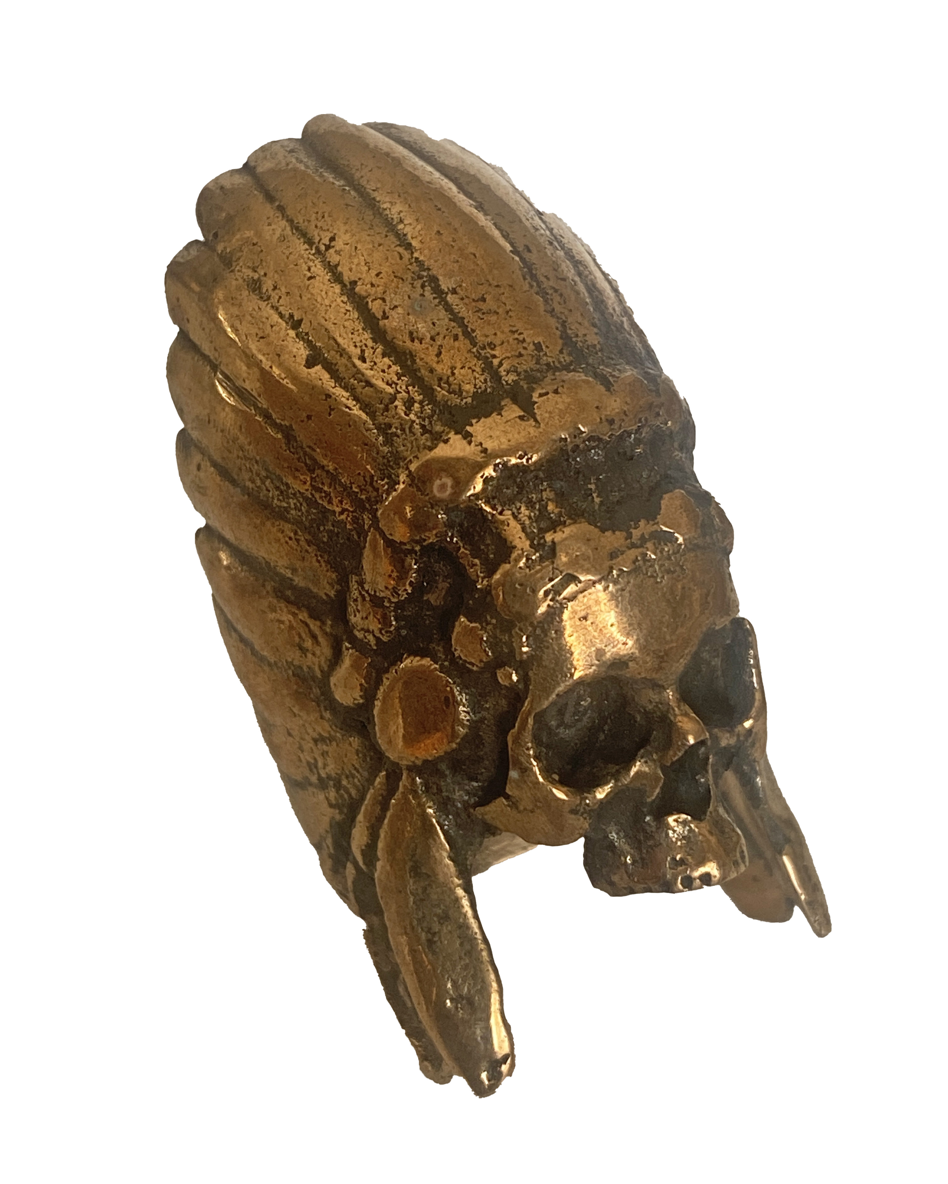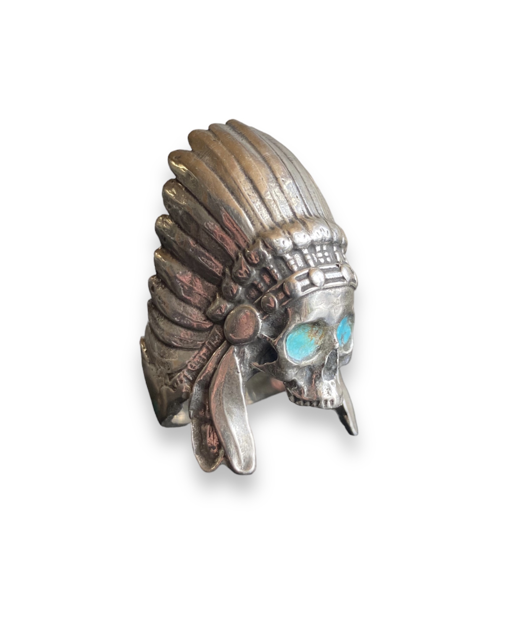 This Large Indian Chief Skull Ring is 3D printed in castable wax on our 3D printer. Then we cast the ring using the Lost wax Casting Method. The ring is available in a variety of metals.
