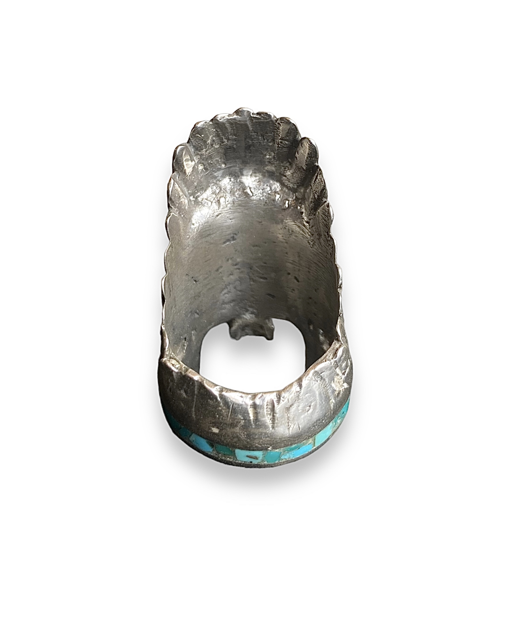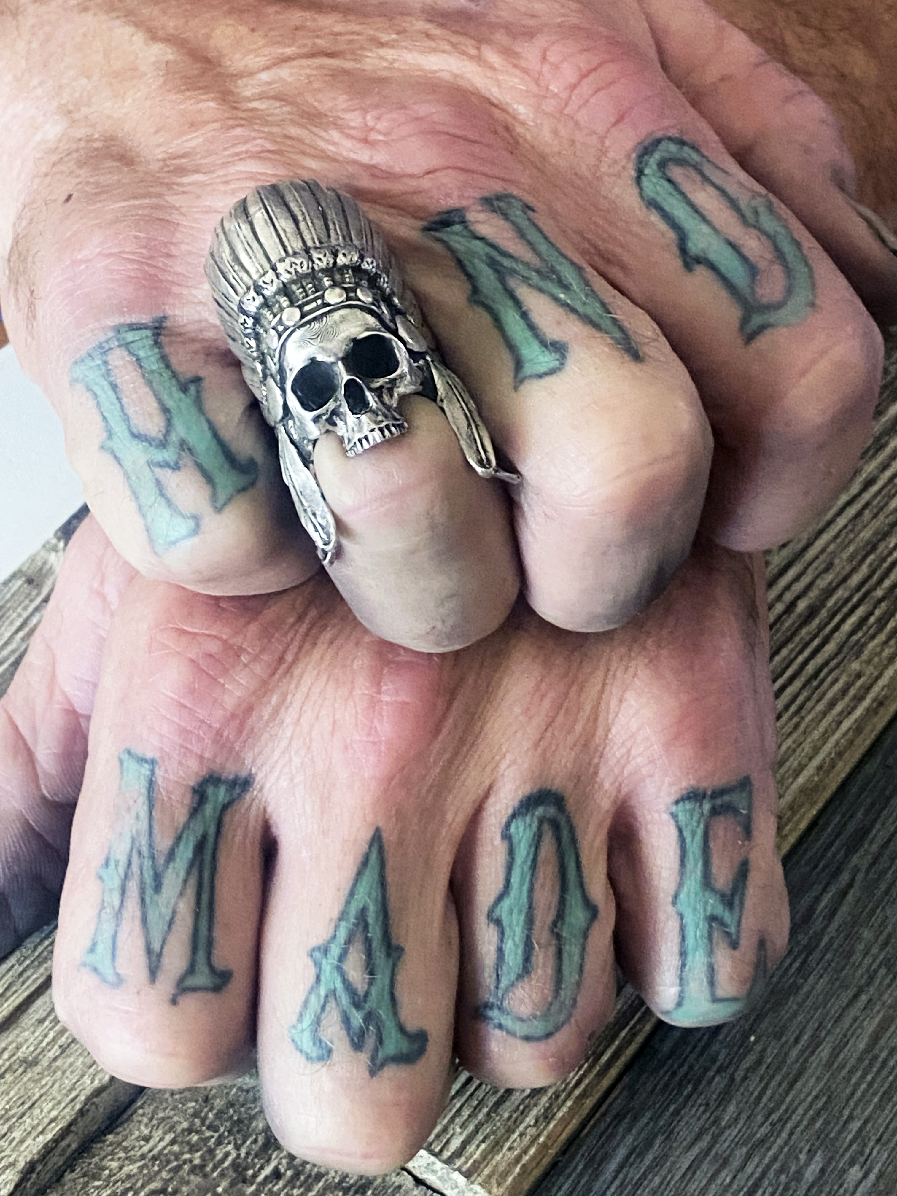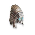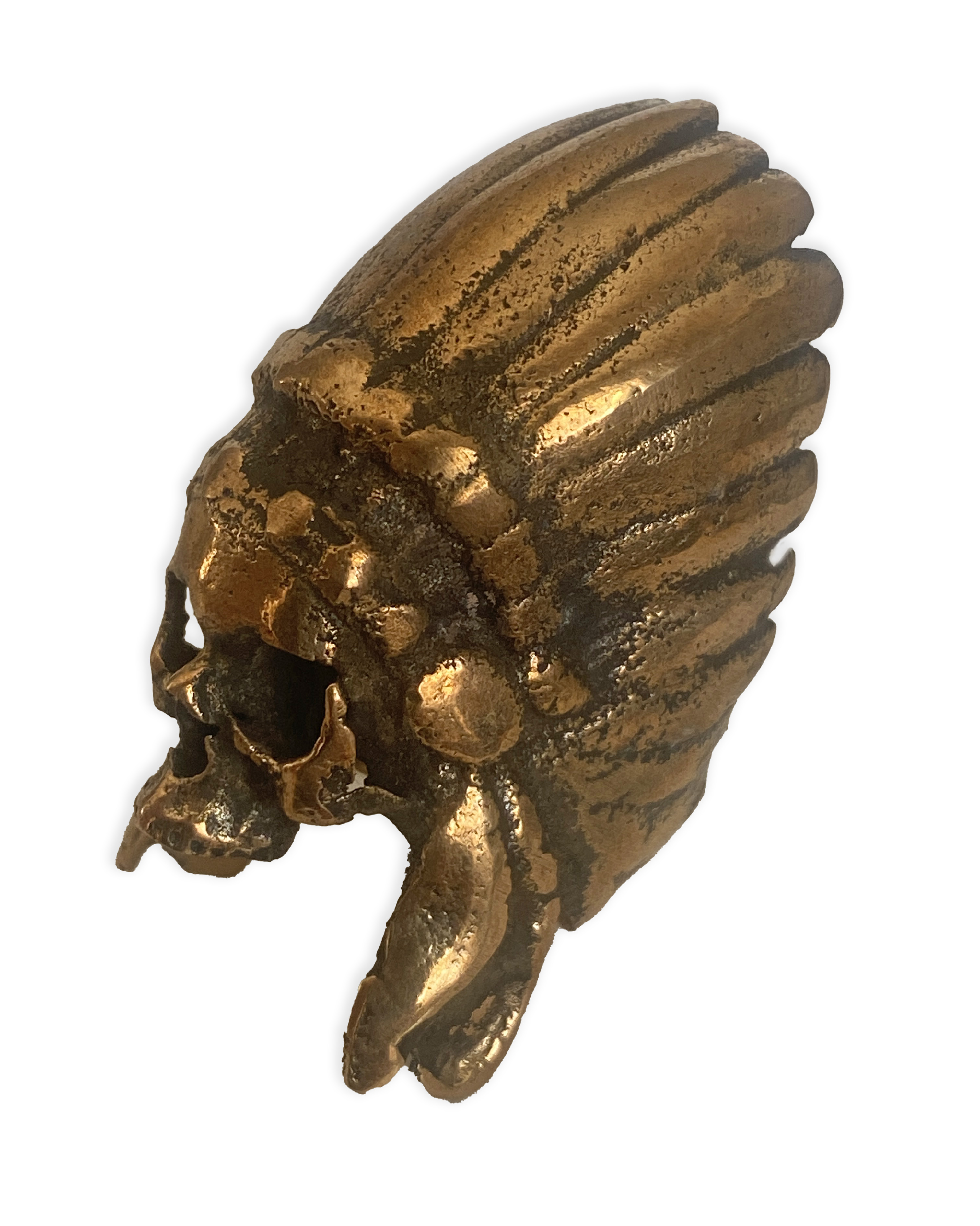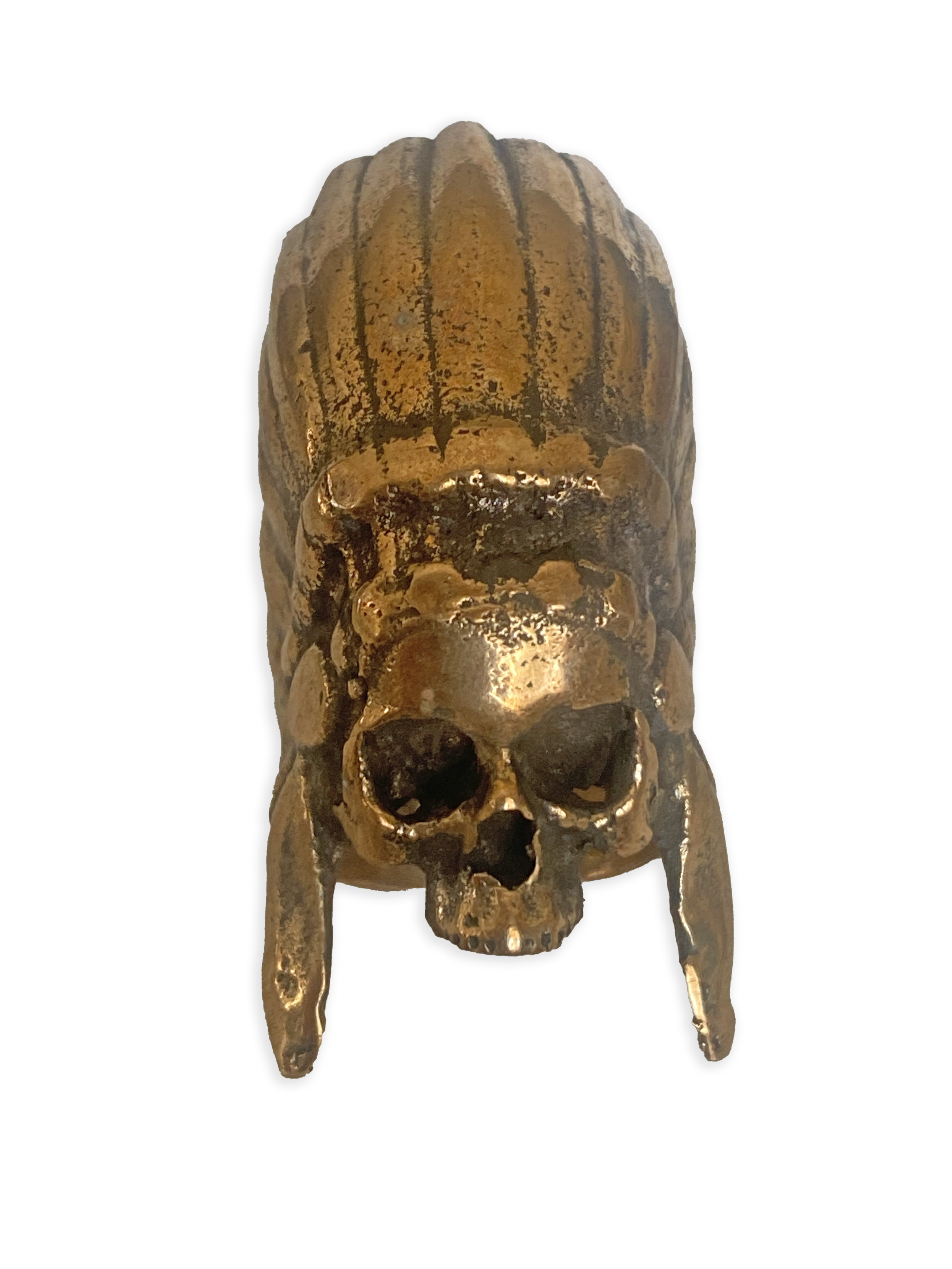 This Large Indian Chief Skull Ring is 3D printed in castable wax on our 3D printer. Then we cast the ring using the Lost wax Casting Method. The ring is available in a variety of metals.