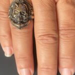 We recommend Sterling Silver or Gold for everyday wear. The ring can tarnish over time. We recommend using a flannel polishing cloth to clean the pieces. We can also gold plate this ring if you like.