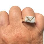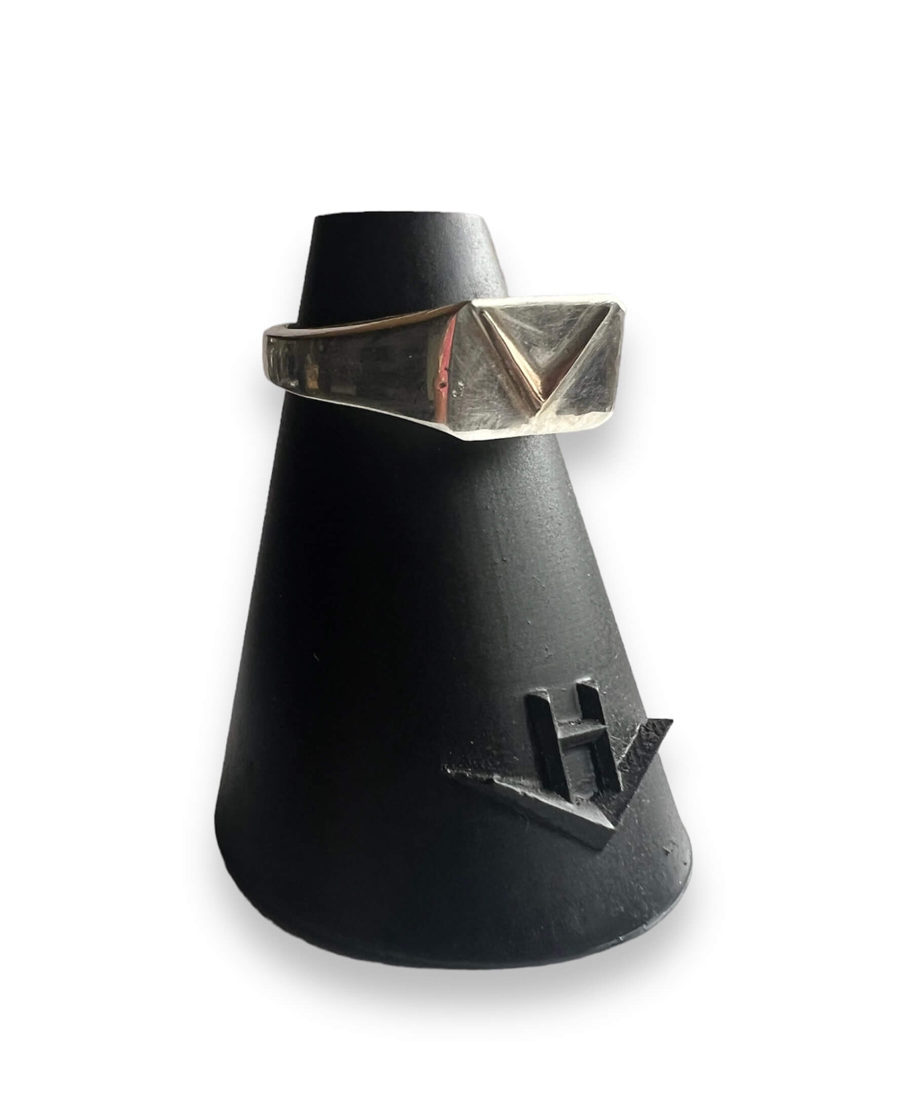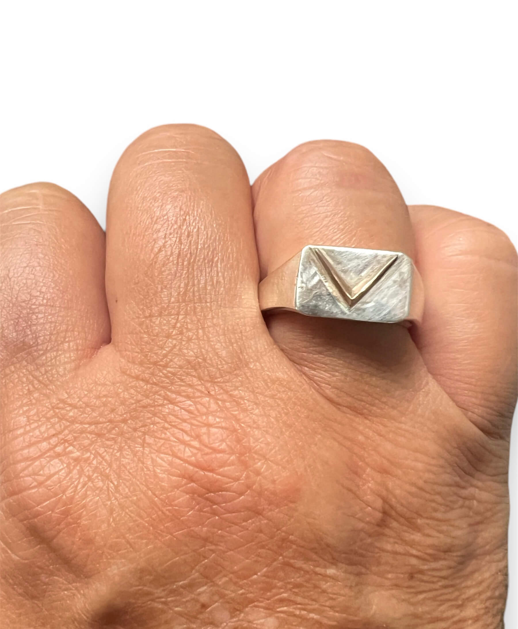 This handmade ring is created using the lost wax casting method. We carve the design in wax, size it, and then cast in metal. Sterling silver can tarnish over time. We recommend using a flannel polishing cloth to clean the pieces.
