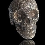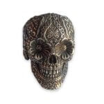 Sugar Skull Dia De Los Muertos Calavera Ring captures the practice of celebrating Dia De Los Mueros of Day of the Dead which is a Mexican holiday. This is a time of year when the lines between the land of the living and the land of the dead blur. According to superstition, souls of deceased loved ones roam the earth, and these skulls are a reminder of that. People offer sugar skulls on graves and family altars during the Day of the Dead. They recognize the person who has passed, and the individual’s name is written on the forehead of the skull. While it’s a clear symbol of death, it’s also a symbol of life. This Sugar Skull ring is a perfect choice for men or women who love large statement jewelry. This handmade Hi Octane Jewelry ring is created using the lost wax casting method. This design is created in our 3D software then the design is printed on our 3D printer in a castable resin wax, sized, and then cast in your choice of metal. Gold is also available. If interested in ordering gold, please convo us for pricing and to create a custom order.