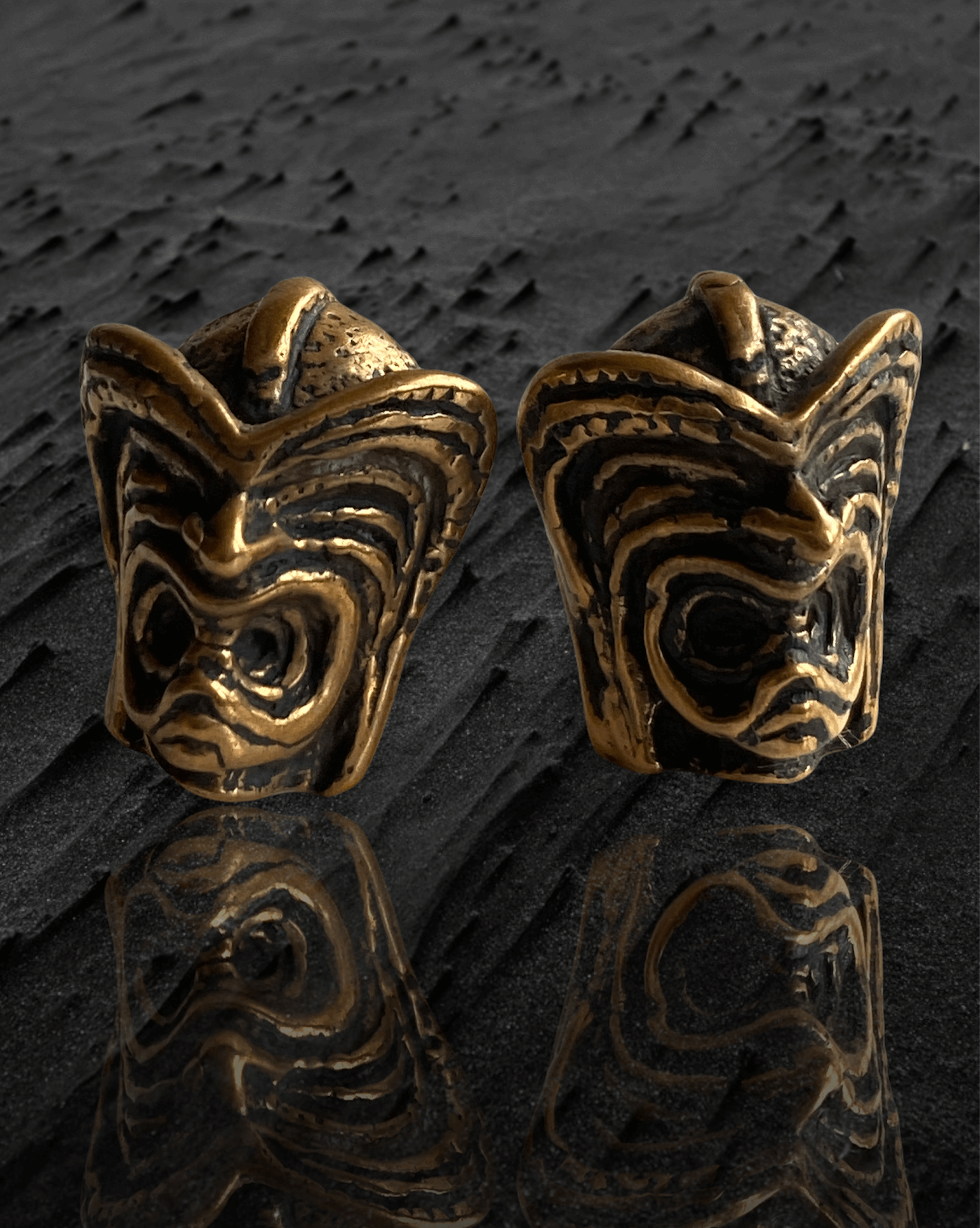 Designed with your Tiki or Hot Rod Guy in mind, these handmade Hi Octane Jewelry Tiki cufflinks are created using the lost wax casting method. We carve the design in wax, size it, and then cast in the metal of your choice.