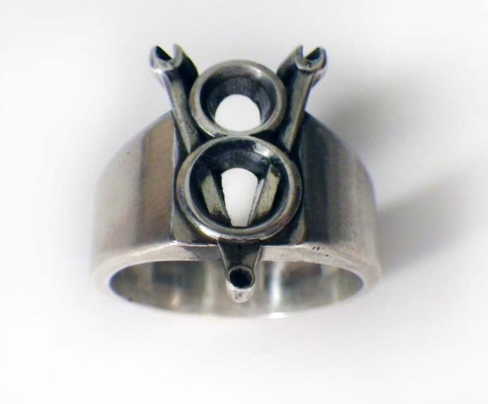 Wrench V8 ring this custom designed V8 design is an Original Design by Hi Octane Jewelry. We created it with our Cad Cam software using 3D Matrix. The piece was then milled in wax. The Silver toned handmade piece is then created using the lost wax casting method.