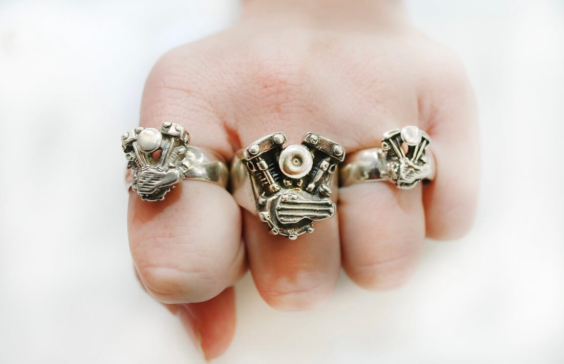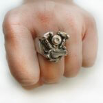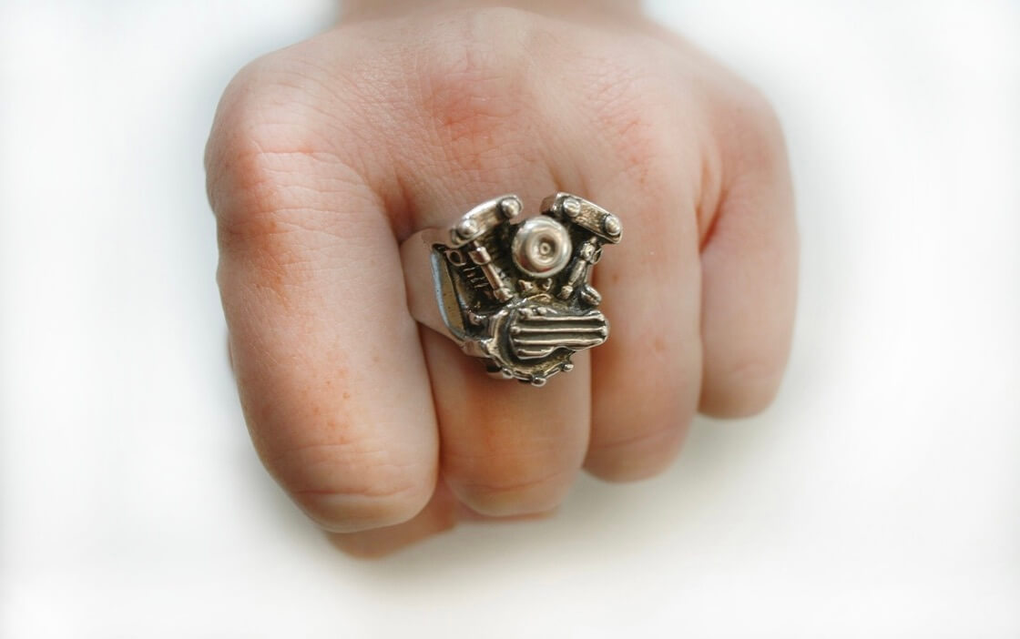 This super cool motorcycle motor ring is handmade. The ring resembles a knucklehead engine motorbike ring.