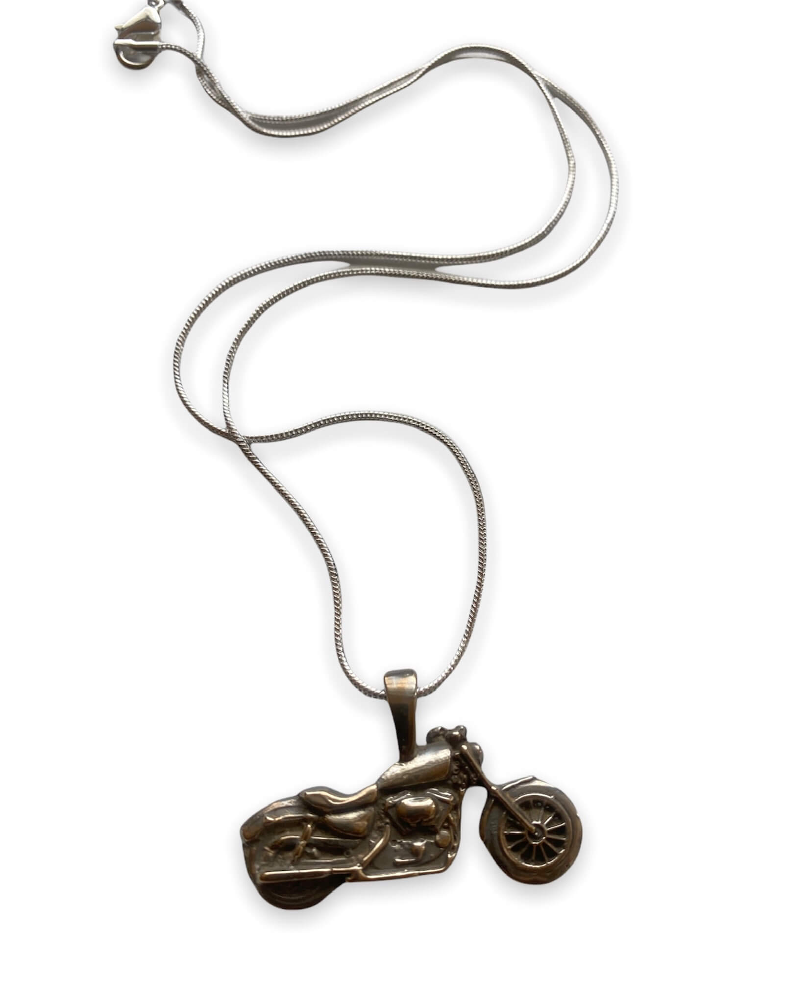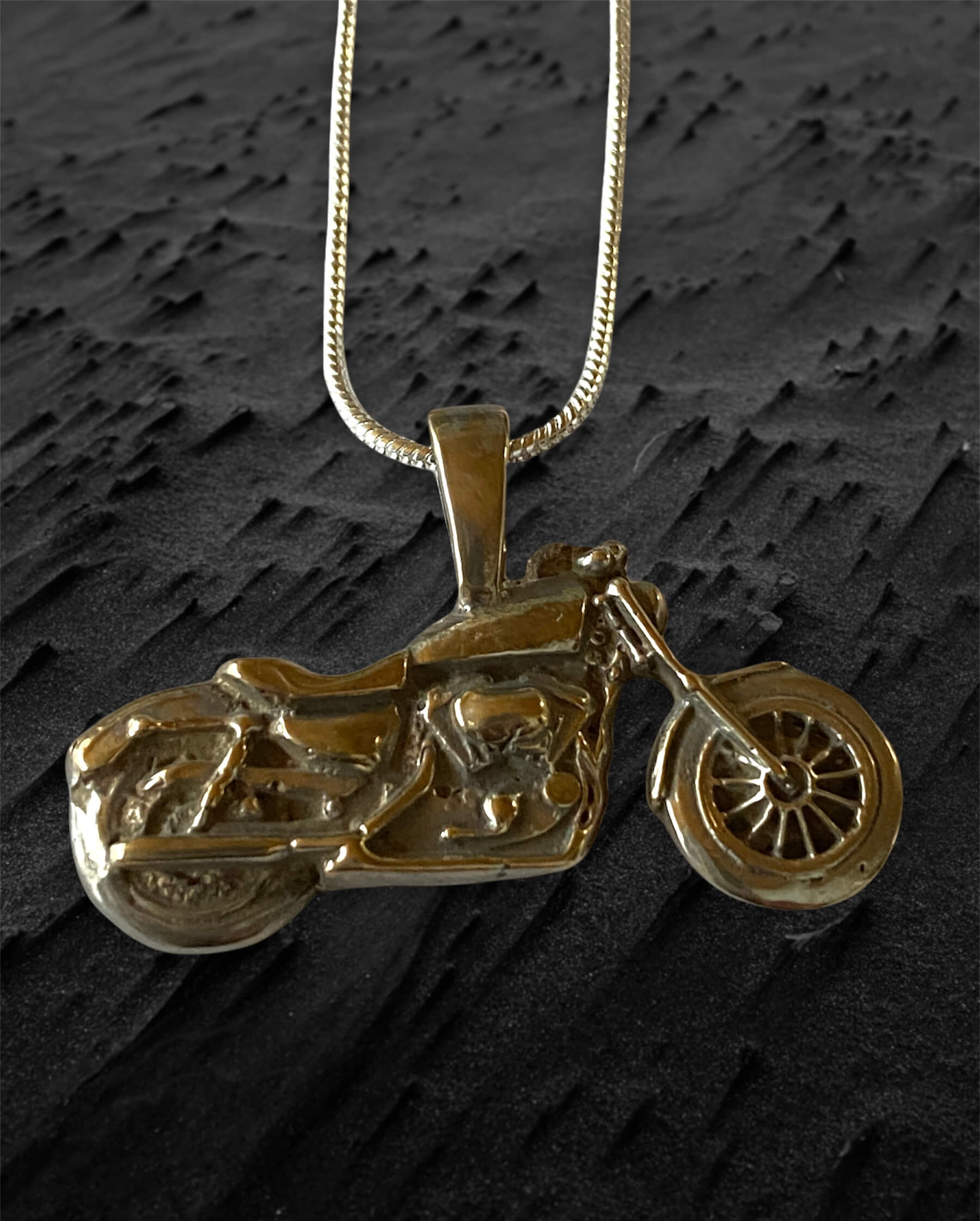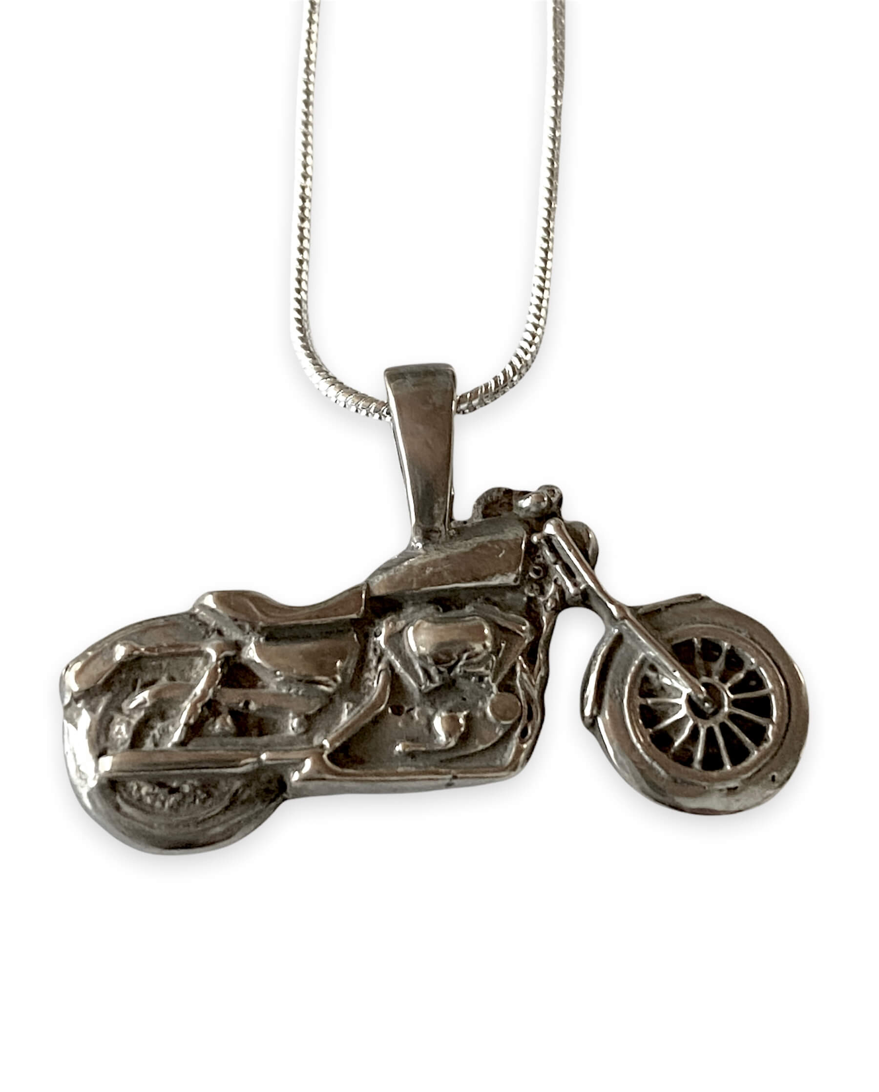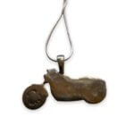 Our Cafe Motorcycle Pendant Necklace is perfect for your Gearhead Guy or Gal. This handmade Hi Octane Jewelry necklace is created using the lost wax casting method. This design is created in our 3D software then the design is printed on our 3D printer in a castable resin wax, sized, and then cast in your choice of metal. Gold is also available. If interested in ordering gold, please convo us for pricing and to create a custom order. Pendant is 1-1/8″ x 3/4″ or 30mm x 15mm chain is 18″ long.