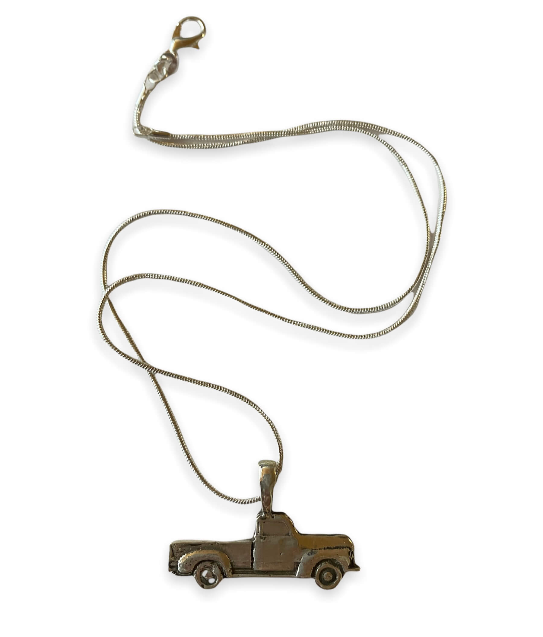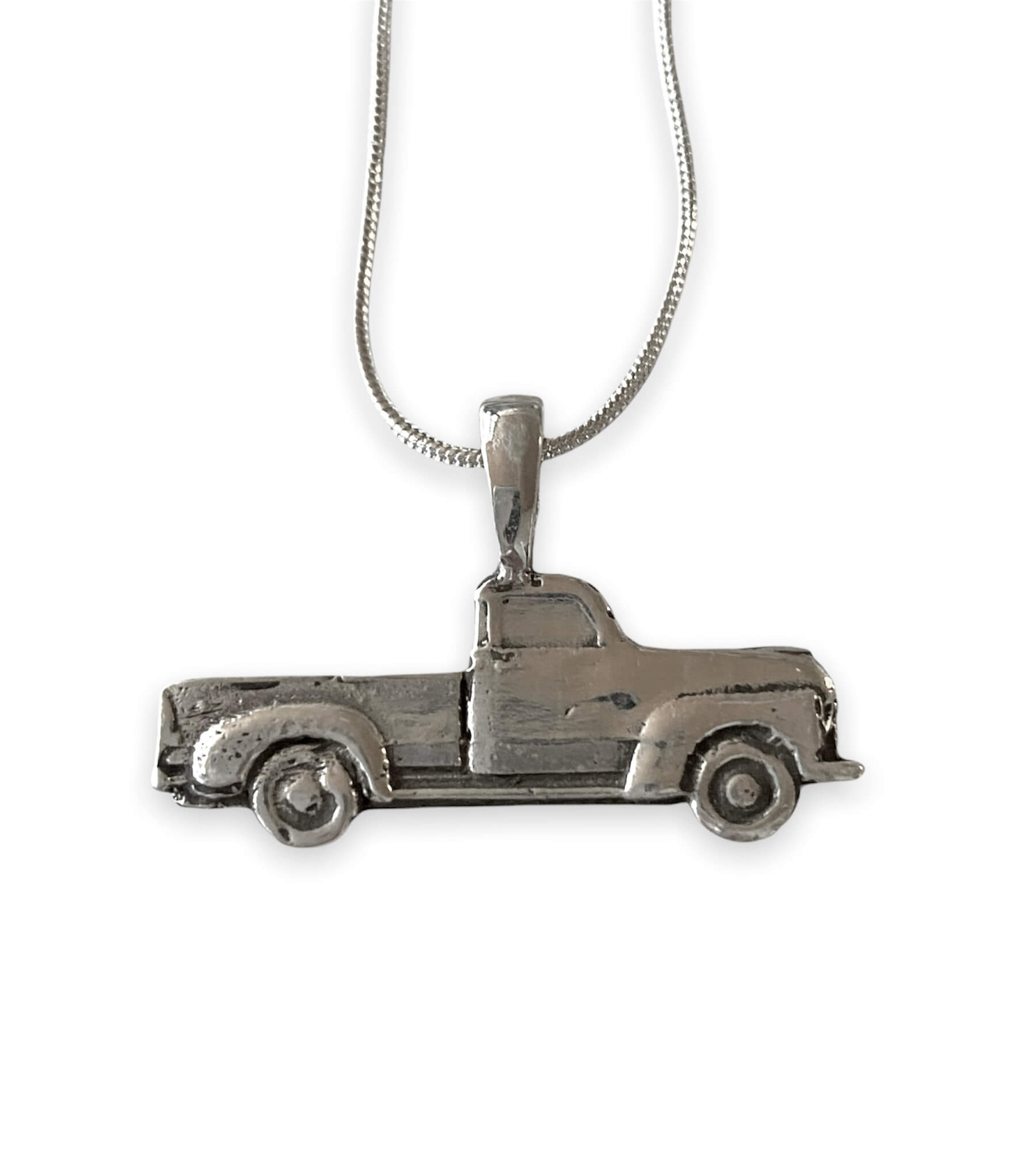 Our 50s Chevy Truck Necklace is perfect for your Gearhead Guy or Gal. This handmade Hi Octane Jewelry necklace is created using the lost wax casting method. This design is created in our 3D software then the design is printed on our 3D printer in a castable resin wax, sized, and then cast in your choice of metal. Gold is also available. If interested in ordering gold, please convo us for pricing and to create a custom order. Pendant is 1-1/8″ x 3/4″ or 30mm x 15mm chain is 18″ long.